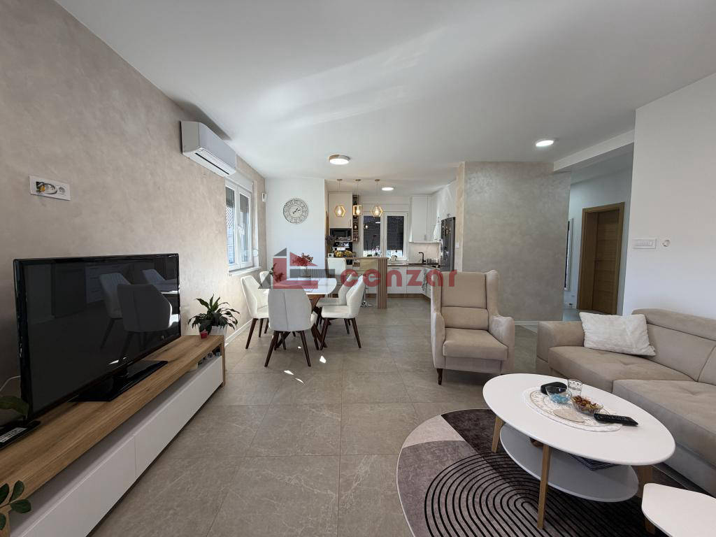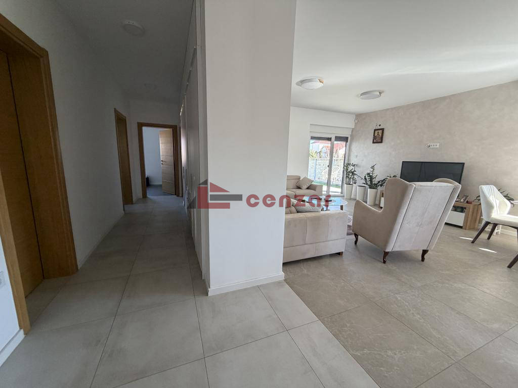 Prizemna porodična kuća površine 169m2 izgrađena 2023 godine na placu od 844m2.Poseduje tri prostrane spavaće sobe,centralni deo kuće čini dnevni boravak koji je povezan sa kuhinjom i ima izlaz na dvorišnu terasu,kupatilo,ostavu i garažu.Podno grejanje na gas,trofazni priključak za struju vodovod i kanalizacija gradska.Nalazi se u mirnom delu Kervaroša.