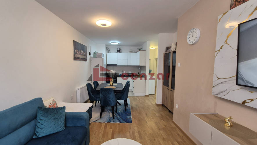 Prodaje se trosoban stan u novoj zgradi u Blizini Prozivke. Sastoji se od hodnika, kuhinje sa trpezarijom i dnevnim boravkom sa izlazom na terasu, dve zasebne sobe, kupatila i vešernice. Nalazi se na lV spratu u zgradis sa liftom.