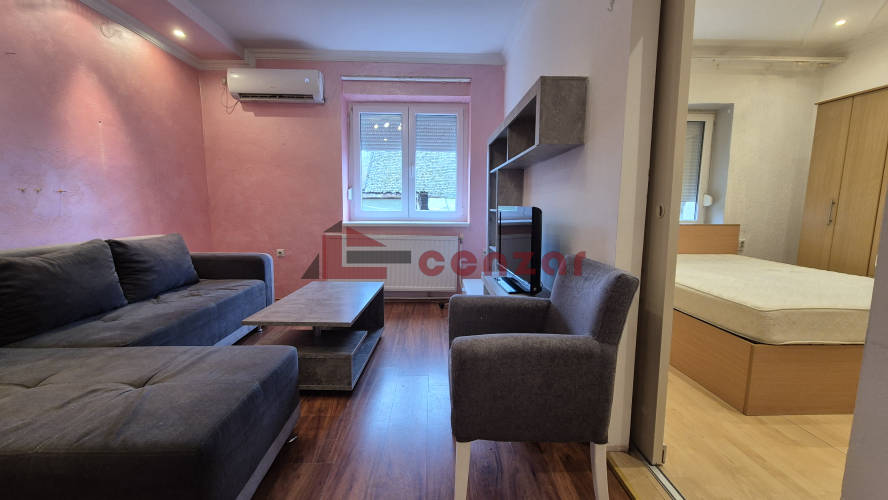 Stan u starijoj zgradi,renoviran sa kružnim rasporedom prostorija.Poseduje spavaću sobu,dnevni boravak,kuhinju sa trpezarijom i kupatilo sa kadom.Stolarija pvc,grejanje etažno na struju i inventer klimu.Nalazi se u prizemlju zgrade.Poseduje svoju podrumsku prostoriju.
