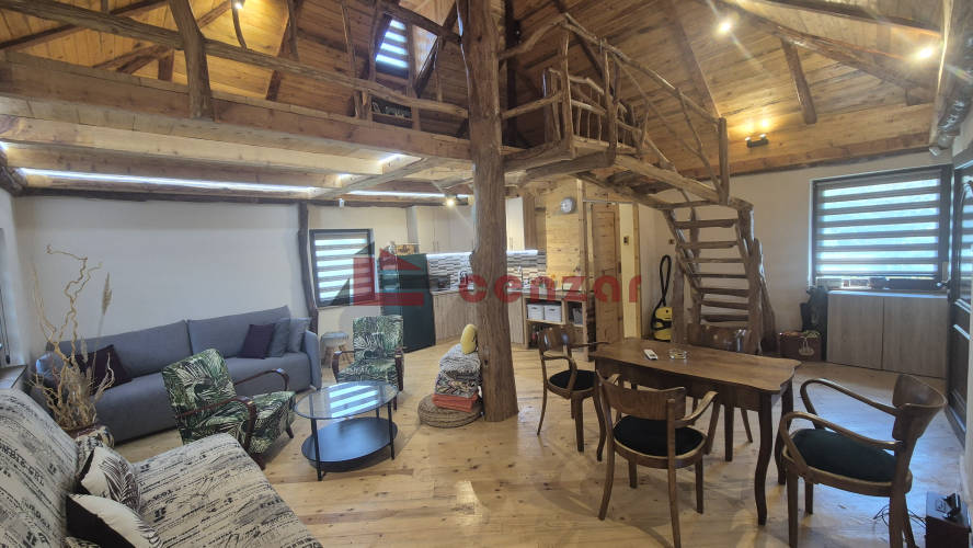 Prodaje se potpuno renovirana i nameštena vikend kuća okružena zrelim drvećem u naselju Kelebija. Kuća je ukupne površine 87 m2 sa velikom natkrivenom terasom koja pruža pogled na prednji deo dvorišta i zidani roštilj. Unutrašnji deo se sastoji od kuhinje sa trpezarijom i dnevnim boravkom, kupatila i spavaće sobe na galeriji. Potpuno je renovirana, od poda do krova, a terasa je novo izgrađena. Iza kuće je još jedan stambeni objekat površine 60 m2 koji se sastoji od dve veće prostorije sa izlazom na dvorište i kupatila. Objekat se može koristiti kao dvosoban stan ili dodatni prostor po potrebi. U dvorištu je još jedan toalet i veliki limena hala cc 40 m2 koj...